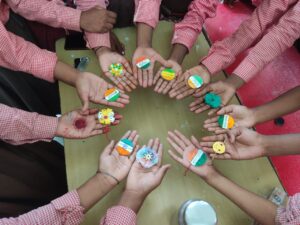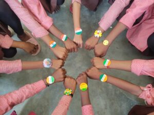 आजमगढ़:हर घर तिरंगा के तहत पूर्व माध्यमिक विद्यालय पटवध कौतुक पर बच्चियों द्वारा बनाई गई राखी और रंगोली