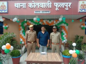 दिनाक 14-08-2025 को उ0नि0 दिनेश कुमार त्रिपाठी मय हमराह द्वारा चेकिंग के दौरान सदरपुर बरौली गेट से दुर्वाषा रोड पर लगभग 50 मीटर से समय करीब 14-19 बजे एक अदद नाजायज पिस्टल .32 बोर के साथ अभियुक्त विपिन राय उर्फ बब्बू राय पुत्र ईश्वरचन्द्र राय साकिन भँवरूपुर थाना अहरौला जनपद आजमगढ़ हाल पता कस्बा फूलपुर जनपद आजमगढ़ उम्र करीब 42 वर्ष को हिरासत पुलिस में नियमानुसार लिया गया थाना स्थानीय पर मु0अ0सं0 396/2025 धारा 3/25 आर्म्स एक्ट पंजीकृत कर गिरफ्तार अभियुक्त का चालान मा0 न्यायालय किया गया।