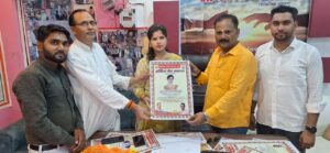 प्रधानाध्यापिका सौम्या पांडेय को सम्मानित करते संस्था के लोग