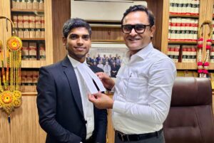 मेहनगर ( आजमगढ़ ) : बार कौंसिल ऑफ सुप्रीम कोर्ट के पूर्व सचिव व वरिष्ठ अधिवक्ता रोहित पांडे ने शिवम कश्यप को ब्रैड बांधकर सुशोभित कर अपना शिष्य बनाते हुए आशीर्वाद देकर उज्जवल भविष्य की कामना किया ,