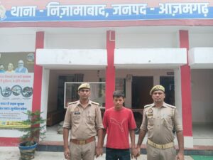 फरिहा चौकी प्रभारी उ0नि0 अनिल कुमार सिंह थाना निजामाबाद आजमगढ़ मय हमराह द्वारा मुखबिर की सूचना पर मुईया मकदूमपुर मोड़ के पास से एक अभियुक्त जयहिंद यादव पुत्र बसन्ता यादव निवासी ग्राम असनी थाना निजामाबाद जनपद आजमगढ़ उम्र 23 वर्ष को एक अदद अवैध तमंचा .315 बोर व एक अदद जिंदा कारतूस .315 बोर के साथ समय करीब 23.10 बजे हिरासत में लिया गया। बरामदगी के आधार पर दिनांक 19.09.2025 को थाना निजामाबाद पर मु0अ0सं0- 324/25 धारा 3/25 आर्म्स एक्ट बनाम अभियुक्त उपरोक्त के विरुद्ध पंजीकृत किया गया। अन्य अग्रिम विधिक कार्यवाही प्रचलित है।