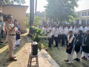 Mau. Under Mission Shakti Phase 05, on Wednesday, as per the instructions of the State Government, in compliance with the order of SP Mau, Kotwal Pramendrakumar Singh and Mission Shakti Center and Anti-Romeo Police Team reached Sarvodaya Inter College Ghosi, SM Academy School Kasbakhas Ghosi and Career Coaching and informed the girls by giving help line and safety tips.