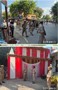 mau SP Elamaranji inspected the Durga Puja Pandals to be set up at Mazhwaramad of Ghosi Nagar on Wednesday at three o'clock and gave necessary directions. SP Ilamaranji inspected the Durga Puja Pandals along with Ramlilam Maidan at Majhwaramod of Ghosi Nagar during the field trip with the aim of completing the festivals in a peaceful and amicable manner.