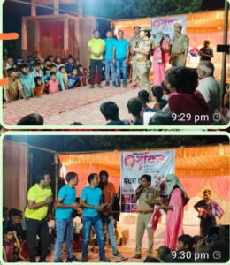 घोसी। मऊ।एसपी के निर्देश पर घोसी कोतवाली पुलिस द्वारा वृहस्पतिवार की रात्रि मे पुलिस एवं स्थानीय कलाकारों द्वारा नुक्कड़ नाटक का मंचन कर महिलाओ, बलिकाओ को जागरुक करने के साथ शोहदो को कड़ा संदेश दिया गया। घोसी कोतवाल प्रमेंद्रकुमारसिंह की पहल पर मिशन शक्ति मे लगी एस आई ऋचा सोनी एवं यशोदा आदि पुलिस द्वारा स्थानीय कलाकारों योगेंद्र चौहान आदि के मध्यम से घोसी नगर केमझवारामोड़ पर नुक्कड़ नाटक के माध्यम से लोगो खास कर महिलाओ, बलिकाओ को शोहदो आदि से अपनी सुरक्षा, के साथ पुलिस से सुरक्षा आदि का संदेश दिया। साथ ही घोसी मिशन शक्ति केंद्र तथा एंटी रोमियो पुलिस टीम के साथ पुलिस अधिकारियों द्वारा महिलासशक्तिकरण, टोल फ्री नम्बर. 1090, 1930, 112, 1098,101,102 एव अन्य विभिन्न हेल्पलाइन नंबरों के बारे मे तथा सरकार द्वारा महिला कल्याण सम्बन्धी चलाई जा रही योजनाओं महिला सुरक्षा,महिला स्वावलंबन आदि की जानकारी देते हुए उनको जागरुक किया गया। कोतवाल प्रमेंद्रकुमारसिंह ने बताया कि पुलिस का उद्देश्य सबकी सुरक्षा के साथ महिलाओ को सुरक्षित माहौल देना है।वे घबड़ाये नहीं समस्या का डट कर सामना करते हुए बताये गए हेल्प लाइन से पुलिस से संपर्क करे। नुक्कड़ नाटक में भोजीपुरी रंगमंच के कलाकार योगेन्द्र चौहान(जेके आर्ट) घोसी, नागेंद्र कुमार, अनिल सरगम, धर्मराज, बृजनाथ ,शनि चौहान, अतुल चौहान आदि ने अपने जीवंत कला से सबको सार्थक संदेश दिया गया।