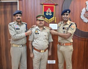 उप निरीक्षक गोपनीय संजीव पांडे का निरीक्षक पद पर हुआ पदोन्नति पुलिस अधीक्षक में कंधे पर स्टार लगाकर दी बधाई