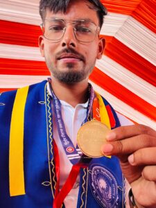 “मैं स्वयं को अत्यंत गौरवान्वित और विनम्र महसूस कर रहा हूँ कि मुझे महामहिम राज्यपाल महोदया द्वारा विश्वविद्यालय से स्वर्ण पदक प्राप्त करने का सौभाग्य मिला। यह उपलब्धि मेरे शिक्षकों और मार्गदर्शकों के निरंतर सहयोग, मार्गदर्शन और प्रोत्साहन के बिना संभव नहीं थी।”