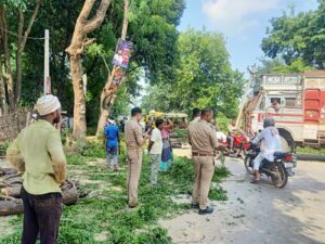 Azamgarh news:डिप्टी रेंजर वरिष्ठ उपनिरीक्षक के सहयोग से रास्ते में अवरोधक पेड़ों की डाल और टहनी कटवाई और छटवाई गई