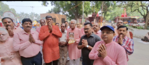 Mau. Ghosi. Ahead of the auspicious occasion of the 1.25 lakh Hanuman Chalisa recitation, to be held on December 14, 2025, under the aegis of the Hanuman Kripa Seva Samiti, committee members visited the city's major temples today to offer invitation cards and receive blessings. Under the leadership of the committee's leader and pillar, Chandrashekhar Agarwal "Chandu Chacha," the invitation cards were first presented at the feet of Siddhivinayak Shri Ganesh Ji Maharaj. Following this, the committee members visited the Sheetla Mai Temple and offered the invitation cards at the Mai's feet and received blessings. Finally, all members reached the court of Maruti Nandan Hanuman Ji, where a special prayer was offered by reciting the Hanuman Chalisa collectively for the success of the 1.25 lakh Hanuman Chalisa recitation. The Sheetla Mai Dham Parishad echoed with cheers. On this occasion, Sheetla Mata Dham President Sanjay Verma, committee members Ravi Baranwal, Arun Verma, Dr. S. Lal, Arun Gupta, Kailash Jaiswal, Ved Narayan Mishra, Anand Gupta, and others were all present with full devotion and enthusiasm. At the end, Sanjay Verma made us sit in the meeting hall and served us light refreshments and the head of the committee, Chandu Chacha, discussed the preparation of the outline of the programme.