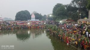 Azamgarh news:अस्ताचलगामी सूर्य को महिलाओं ने दिया अर्घ्य, घाटों पर उमड़ा जनसैलाब