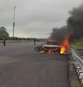 Azamgarh news:पूर्वांचल एक्सप्रेसवे पर चलती कार में लगी आग, चालक ने कूदकर बचाई जान
