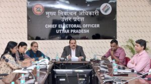 लखनऊ: 06 नवम्बर,:उत्तर प्रदेश के मुख्य निर्वाचन अधिकारी श्री नवदीप रिणवा ने प्रदेश में हो रहे विशेष प्रगाढ़ पुनरीक्षण (Special Intensive Revision) को लेकर आज दिनांक 06 नवम्बर, 2025 को सभी जिला निर्वाचन अधिकारियों के साथ वर्चुअल बैठक कर प्रगति की समीक्षा की और आवश्यक दिशा निर्देश दिए।उन्होंने भारत निर्वाचन आयोग द्वारा SIR को लेकर दिए गए दिशा-निर्देशों, कार्यक्रमों और इसकी प्रक्रिया के बारे में जानकारी दी। उन्होंने कहा कि SIR के दौरान कहीं से भी गड़बड़ी की शिकायत नहीं आनी चाहिए। मतदाता सूची में नाम जोड़ने या हटाने की प्रक्रिया पूरी तरह से पारदर्शी हो। कोई भी अपात्र व्यक्ति मतदाता सूची में शामिल न होने पाए। सभी पात्र नागरिकों के नाम मतदाता सूची में सम्मिलित हो सके, इसके लिए पूरी सतर्कता बरती जाए।समीक्षा में यह पाया गया कि सभी जिला निर्वाचन अधिकारियों द्वारा राजनैतिक दलों के साथ बैठक करके उन्हें SIR की प्रक्रिया और आयोग के निर्देशों की जानकारी दे दी गई है। साथ ही सभी राजनैतिक दलों से बूथ लेबल एजेंट (BLA) नियुक्त करने का अनुरोध भी किया गया है, जो पुनरीक्षण कार्यों में बीएलओ का सहयोग करेंगे।
