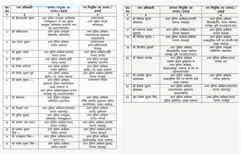 Azamgarh News: यूपी पुलिस में बड़ा फेरबदल: 23 पीपीएस अधिकारियों के तबादले, कानून-व्यवस्था को सशक्त बनाने की तैयारी