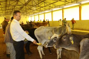 आजमगढ़ 12 नवम्बर– जिलाधिकारी रविन्द्र कुमार ने आज नगर पंचायत मार्टिनगंज स्थित सुरहन गौशाला का स्थलीय निरीक्षण किया। सुरहन गौशाला मे बीमार पशुओं के लिए अलग से रहने की व्यवस्था नहीं की गई थी। जिस पर जिलाधिकारी ने निर्देश दिया कि बीमार पशुओं को अलग से रहने एवं दवा/उपचार की व्यवस्था संबंधित पशु चिकित्सा अधिकारी से समन्वय स्थापित कर सुनिश्चित करे। निरीक्षण के दौरान हरे चारे के लिए सुरक्षित जमीन पर धान की फसल बोई पाई गई, जबकि पूर्व में निर्देश दिया गया था कि उक्त जमीन पर हर चारे की बुवाई की जाए। जिलाधिकारी ने मौके पर उपस्थित नायक तहसीलदार एवं राजस्व निरीक्षक को निर्देशित किया कि हरे चारे के लिए सुरक्षित भूमि को खाली कराकर हरे चारे की बुवाई सुनिश्चित कराये। गौशाला में सफाई की समुचित व्यवस्था न होने पर जिलाधिकारी ने निर्देश दिया कि साफ सफाई की व्यवस्था नियमित रूप से सुनिश्चित कराये। जिलाधिकारी निर्देश दिया कि गोवंश को ठंड से बचाव के दृष्टिगत गौशाला में तिरपाल आदि की व्यवस्था सुनिश्चित कराये। जिलाधिकारी महोदय के निरीक्षण के दौरान संरक्षित पशुओं की संख्या रजिस्टर, भूसा प्रबंधन समिति रजिस्टर प्रस्तुत नहीं किया गया, जिस पर जिलाधिकारी ने अधिशासी अधिकारी नगर पंचायत मार्टिनगंज को सख्त निर्देश देते हुए कहा कि उपरोक्त रजिस्टर को प्रॉपर तरीके से सुव्यवस्थित किया जाए।पशु चिकित्सा अधिकारी अजय श्रीवास्तव ने जिलाधिकारी महोदय को अवगत कराया कि शत प्रतिशत पशुओं को टैग कर दिया गया है। जिलाधिकारी ने भूसा और चारे का स्टॉक देखा एवं हरा चारा खत्म हो जाने पर नाराजगी व्यक्त किया। उन्होंने अधिशासी अधिकारी को कड़े निर्देश देते हुए कहा कि तत्काल हरा चारा की बुवाई की जाए।अधिशासी अधिकारी द्वारा गौशालाओं के निरीक्षण एवं संरक्षित पशुओं की संख्या न बता पाने पर जिलाधिकारी ने कहा कि गौशाला का नियमित रूप से निरीक्षण करें।इस मौके पर मुख्य राजस्व अधिकारी श्री संजीव ओझा, मुख्य पशु चिकित्साधिकारी आदि उपस्थित रहे।