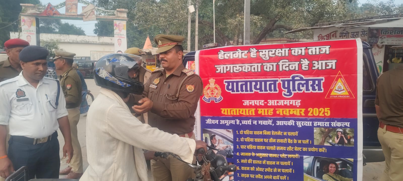 यातायात माह नवम्बर 2025 के क्रम में आज दिनांक 19.11.2025 को वरिष्ठ पुलिस अधीक्षक आजमगढ़ डॉ. अनिल कुमार (IPS) के कुशल निर्देशन में सुरक्षित यातायात जागरूकता हेतु विशेष कार्यक्रम आयोजित किया गया।