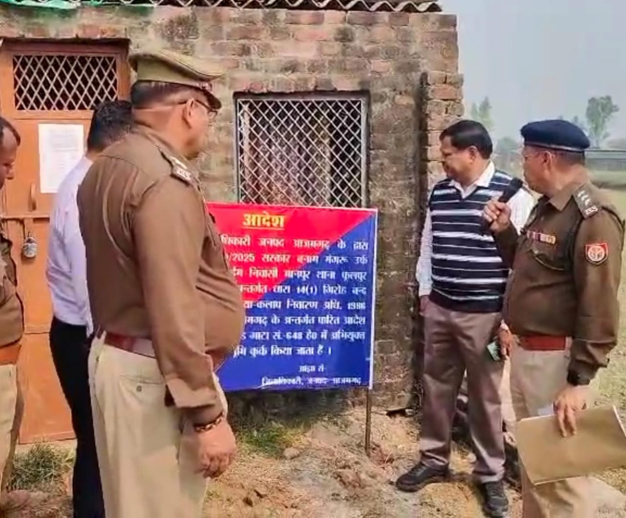 डा0 अनिल कुमार, वरिष्ठ पुलिस अधीक्षक, आजमगढ़ के निर्देशन में अपराध व अपराधियों पर अंकुश एवं प्रभावी नियन्त्रण बनाये रखने हेतु अभियान के क्रम में आज दिनांक- 19.11.2025 को श्रीमान जिला मजिस्ट्रेट आजमगढ़ के आदेश दिनांकित 13 नवम्बर 2025 के क्रम में गैंगस्टर एक्ट से सम्बंधित अभियुक्त मंगरु उर्फ मंगल पुत्र स्व0 नईम निवासी मानपुर थाना पवई जनपद आजमगढ़ द्वारा अपराध से अर्जित अवैध धन से श्रीमती इशरावती पत्नी हीरावन निवासी मुजफ्फरपुर परगना निजामाबाद ,तहसील मेहनगर, जनपद आममगढ़ के नाम से परगना माहुल तहसील फूलपुर आजमगढ़ के गाटा संख्या 648 हे0 में 30.97 कड़ी जमीन क्रय किया गया है जिसका मूल्य 1139295 रु0 (ग्यारह लाख उन्तालीस हजार दो सौ पन्चाबे रुपया मात्र ) है को धारा 14(1) गैंगस्टर एक्ट के तहत कुर्क किया गया l
