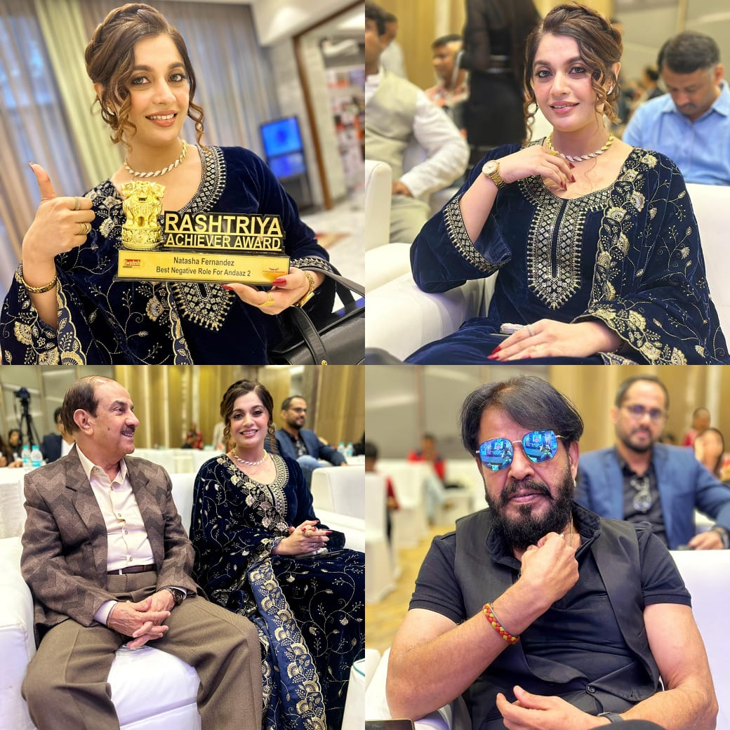 Mumbai:The stunning and talented actress Natasha Fernandes was recently honoured with the Best Actress in a Negative Role Award for her remarkable performance in Andaaz 2, directed and produced by renowned filmmaker Suneel Darshan. Natasha’s compelling portrayal not only won the hearts of audiences but also earned her this prestigious accolade.In her acceptance speech, Natasha expressed heartfelt gratitude to Suneel Darshan Sir, acknowledging his guidance and unwavering support throughout the making of Andaaz 2. She also thanked her co-stars and the entire team for their collaboration, fondly recalling the memorable moments they shared during the film’s production.Radiating grace and happiness, Natasha shared her excitement about her upcoming projects, though she chose to keep details under wraps for now, saying, “I’ll share more about them in detail later.” Her words reflected a warm blend of gratitude, nostalgia, and optimism for the future.She also extended her appreciation to Theme Production Chairman Sanjeev Kumar Ji and Swadesh Channel for organizing the Rashtriya Achievers Awards Season-2. Natasha offered special gratitude to Dr. Vaibhav Sharma, the celebrated International Celebrity Anchor and Celebrity Management Director, for inviting her to this grand event.Natasha concluded her speech with a heartfelt tribute: “A big round of applause for the legendary anchor, Dr. Vaibhav Sharma Sir!” Her closing words reflected her humility and deep respect for the stalwarts of the industry.With her talent, dedication, and undeniable screen presence, Natasha Fernandes continues to captivate audiences. This award marks a significant milestone in her journey, further strengthening her reputation as a versatile and distinguished actress.