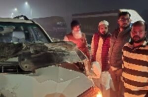 आजमगढ़, पूर्वांचल एक्सप्रेसवे पर बीती रात एक बड़ी दुर्घटना होते-होते बच गई। राष्ट्रीय ओलमा कौंसिल के राष्ट्रीय अध्यक्ष मौलाना आमिर रशादी सोमवार रात आजमगढ़ से लखनऊ जा रहे थे। रात लगभग 11:30 बजे, एक्सप्रेसवे के 198 किलोमीटर मार्कर के पास उनकी SUV से अचानक विपरीत दिशा से आए एक जंगली जानवर ने तेज़ टक्कर मार दी।अचानक हुई इस जोरदार टक्कर से मौलाना की SUV बुरी तरह क्षतिग्रस्त हो गई। हादसा इतना भीषण था कि गाड़ी का अगला हिस्सा पूरी तरह चकनाचूर हो गया, लेकिन बड़ी राहत की बात यह रही कि मौलाना और वाहन में मौजूद अन्य सभी यात्री सुरक्षित रहे। उन्हें केवल मामूली चोटें आईं।
