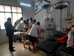 सीएमओ ने चिकित्सकों को निर्देशित किया कि सभी घायलों का समुचित उपचार बिना किसी विलंब के प्राथमिकता से सुनिश्चित किया जाए। मुख्य चिकित्साधिकारी ने विशेष रूप से गंभीर मरीज किन्नू के केस की विस्तृत समीक्षा करते हुए उसे तुरंत उच्चतर केंद्र रेफर करने के निर्देश दिए ताकि आवश्यक उन्नत चिकित्सकीय सुविधाएं समय से उपलब्ध हो सकें। इस दौरान एडिशनल सीएमओ डाॅ. उमाशरण पांडेय भी उपस्थित रहे और जिला अस्पताल में भर्ती मरीजों के उपचार प्रबंधन में सक्रिय रूप से सहयोग प्रदान करते रहे।