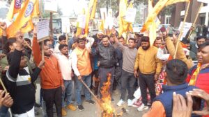 Azamgarh news:बंगलादेश दिपू दास के जघन्य हत्या व इस्लामी जिहाद के विरोध में विश्व हिंदू परिषद किया पुतला दहन