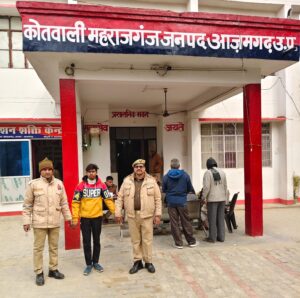 आजमगढ़:महराजगंज थाने की पुलिस ने मिशन शक्ति 5.0 अभियान के तहत किशोरी का अपहरण करने वांछित 01 अभियुक्त गिरफ्तार,वादिनी द्वारा थाना महराजगंज पर लिखित तहरीर दी गई थी कि उसकी 15 वर्षीया पुत्री को अभियुक्त द्वारा बहला-फुसलाकर भगा ले जाया गया है। उक्त तहरीर के आधार पर थाना महराजगंज पर मु0अ0सं0 324/25, धारा 137(2)/87 बीएनएस के अंतर्गत अभियोग पंजीकृत किया गया।वरिष्ठ पुलिस अधीक्षक आजमगढ़ डॉ. अनिल कुमार (IPS) के निर्देशानुसार, अपर पुलिस अधीक्षक ग्रामीण एवं क्षेत्राधिकारी सगड़ी के कुशल निर्देशन में, अपराध नियंत्रण एवं वांछित अपराधियों की गिरफ्तारी हेतु चलाए जा रहे अभियान के क्रम में, प्रभारी निरीक्षक महराजगंज के नेतृत्व में गठित पुलिस टीम द्वारा दिनांक 24.12.2025 को मुखबिर की सूचना पर अभियुक्त रामप्रसाद मौर्य पुत्र ओमप्रकाश मौर्य, निवासी ग्राम अवसानपुर, थाना महराजगंज, जनपद आजमगढ़, उम्र लगभग 19 वर्ष को परशुरामपुर तिराहे से समय करीब 15.40 बजे गिरफ्तार किया गया। गिरफ्तारी के दौरान नाबालिग बालिका को सकुशल बरामद किया गया। गिरफ्तार अभियुक्त को आवश्यक विधिक कार्यवाही पूर्ण करते हुए माननीय न्यायालय के समक्ष प्रस्तुत किया जा रहा है।