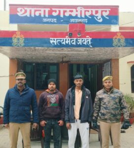 वरिष्ठ पुलिस अधीक्षक महोदय आज़मगढ़ के निर्देशन एवं पुलिस अधीक्षक नगर के पर्यवेक्षण में, थानाध्यक्ष अखिलेश कुमार सिंह के निर्देश पर आज दिनांक 06.01.2026 को उ0नि0 योगेश सरोज, हमराह कां0 अभिनन्दन एवं कां0 अभय चौधरी द्वारा थाना स्थानीय पर पंजीकृत मु0अ0सं0 02/2026, धारा 2(ख)(I)/3(1) उत्तर प्रदेश गिरोहबंद एवं समाजविरोधी क्रियाकलाप अधिनियम, 1986 में वांछित अभियुक्तगण—