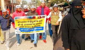 इस अवसर पर जिला उपाध्यक्ष जावेद अहमद एवं जिला मीडिया प्रभारी नागेन्द्र शर्मा ने कहा कि भारत को बांग्लादेश में हिंदू अल्पसंख्यकों पर हो रहे अन्याय पर मौन नहीं साधना चाहिए, बल्कि अपनी कूटनीतिक, आर्थिक और अंतर्राष्ट्रीय शक्ति का उपयोग कर वहां हिंदू अल्पसंख्यकों की सुरक्षा सुनिश्चित करनी चाहिए।