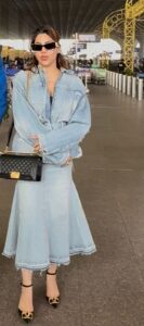 Mumbai:Nikki Tamboli once again proved that when it comes to fashion, no occasion is ever ordinary for her—not even an airport appearance. Recently spotted at the airport, the actress effortlessly transformed the terminal into a glamorous runway with her chic blue-toned outfit, striking the perfect balance between comfort and high fashion.
