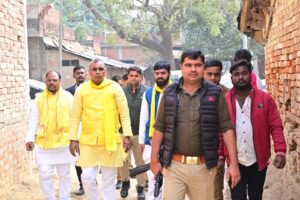 Azamgarh news:आईटीबीपी इंस्पेक्टर के घर पहुंचे मंत्री ओमप्रकाश राजभर, परिजनों से की मुलाकात