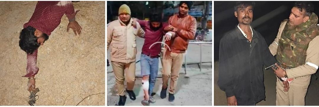 अपने को घिरा देख वाहन में सवार दो अभियुक्तों ने पुलिस को गाली देते हुए जान से मारने की धमकी दी और अवैध तमंचों से फायरिंग शुरू कर दी। पुलिस द्वारा आत्मरक्षा में की गई नियंत्रित जवाबी कार्रवाई में एक अभियुक्त के दाहिने पैर में गोली लग गई, जबकि दूसरा अभियुक्त भागने का प्रयास करते हुए पुलिस की घेराबंदी में गिरफ्तार कर लिया गया।