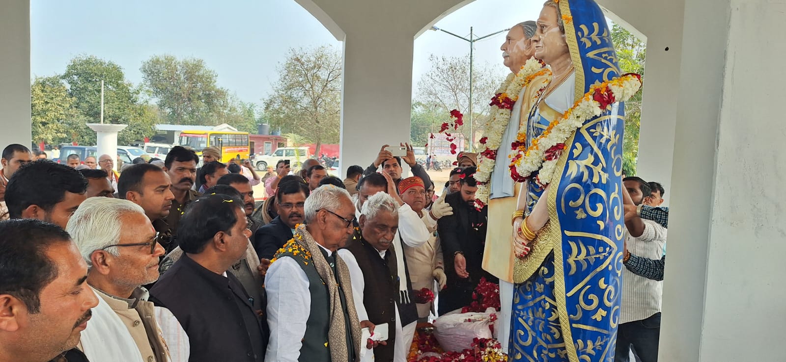 यह प्रतिमाएं उनके सुपुत्र राजा संतोष कुमार मिश्रा द्वारा अपने पूज्य माता-पिता की अमिट स्मृति को चिरस्थायी बनाने के उद्देश्य से स्थापित कराई गई हैं।कार्यक्रम में श्रद्धा, संस्कार और भारतीय परंपरा का अद्भुत संगम देखने को मिला।वैदिक मंत्रोच्चार, पुष्पवर्षा और जयघोष के बीच जैसे ही प्रतिमाओं से आवरण हटाया गया, पूरा परिसर तालियों की गड़गड़ाहट से गूंज उठा।ग्रामीणों और आगंतुकों ने इसे क्षेत्र के लिए गौरवपूर्ण क्षण बताया।