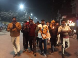 शहीद दिवस पर शुक्रवार की देर शाम राष्ट्रपिता महात्मा गांधी के प्रिय भजन ‘रघुपति राघव राजा राम, पतित पावन सीताराम, ईश्वर अल्ला तेरो नाम सबको सन्मति दें भगवान’ के साथ हाथों में जलती हुई मोमबत्ती लेकर चल रहे युवाओं नें नगर पंचायत महराजगंज में राष्ट्रपिता महात्मा गांधी के सत्य व अहिंसा की विचारधारा को जीवंत करने का कार्य किया ।
