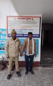 आज दिनांक 02.02.2026 को थानाध्यक्ष जय प्रकाश मय पुलिस टीम द्वारा मुखबिर की सूचना पर अभियुक्त जालन्धर उर्फ जलान्धर पुत्र बुद्धू निवासी ग्राम खारीडिहा, थाना कप्तानगंज, जनपद आजमगढ़ (उम्र 51 वर्ष) को सन्तुगंज बाग, खीरीडिहा से समय 12:10 बजे गिरफ्तार किया गया। गिरफ्तार अभियुक्त को नियमानुसार माननीय न्यायालय/जेल भेजा जा रहा है।