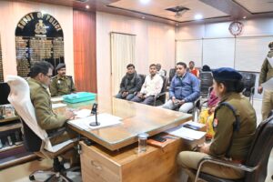 पुलिस कार्यालय में आयोजित जनसुनवाई (जन संवाद) कार्यक्रम के अंतर्गत वरिष्ठ पुलिस अधीक्षक डॉ0 अनिल कुमार द्वारा आईजीआरएस पोर्टल पर प्राप्त प्रार्थना पत्रों की गहन समीक्षा की गई। संबंधित थानों द्वारा की गई जांच के उपरांत प्रस्तुत फीडबैक से असंतोष व्यक्त करने वाले कुल 06 आवेदकों को जनसुनवाई हेतु आमंत्रित किया गया था, जिनमें से 05 आवेदक वरिष्ठ पुलिस अधीक्षक महोदय के समक्ष उपस्थित हुए।