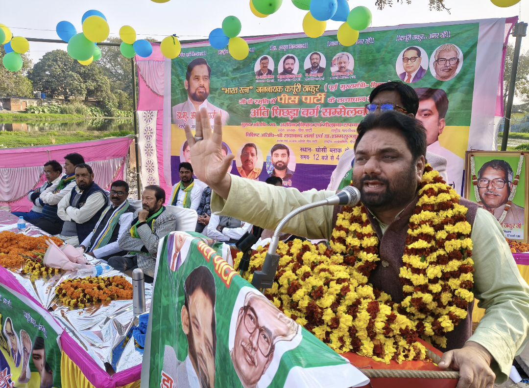 घोसी।मऊ। भारत रत्न जननायक कर्पूरी ठाकुर की स्मृति में पीस पार्टी के तत्वावधान में मदापुर चौक पर अति पिछड़ा वर्ग सम्मेलन का आयोजन किया गया। सम्मेलन में बड़ी संख्या में पार्टी पदाधिकारी, कार्यकर्ता एवं अति पिछड़ा वर्ग के लोग मौजूद रहे।