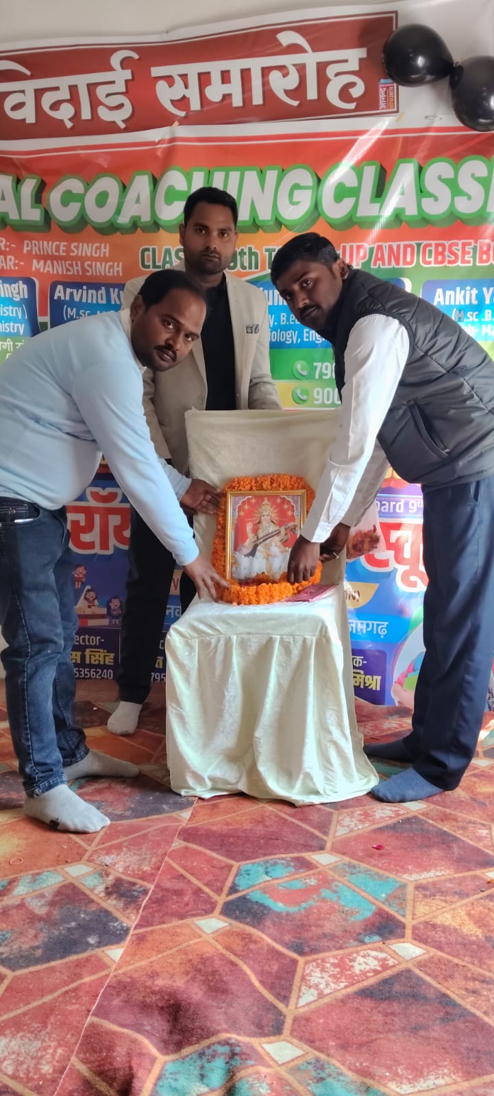 मां सरस्वती की वंदना के साथ शुरू हुआ रॉयल कोचिंग ठेकमा का विदाई कार्यक्रम
