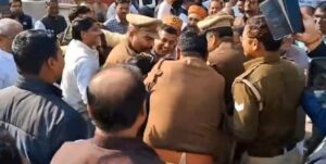 आजमगढ़ में शिक्षा मंत्री जयंत चौधरी का शिक्षकों ने पुलिस के धक्का मुक्की के बीच में ही किया पुतला दहन