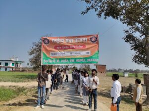 लालगंज आजमगढ़ स्थानीय तहसील क्षेत्र के फेंकू सिंह महाविद्यालय चेवार में राष्ट्रीय सेवा योजना के सात दिवसीय विशेष शिविर के तीसरे दिन स्वयंसेवक/स्वयं सेविकाओं द्वारा साक्षरता अभियान रैली महाविद्यालय से कंजहित बाजार तक निकाली गई। बाजार में स्थित पीएम श्री कंपोजिट विद्यालय के प्रांगण की साफ-सफाई की गई तथा साक्षरता के प्रति बच्चों को जन जागरूक किया गया। तत्पश्चात भोजन कराया गया।भोजनोपरांत सांस्कृतिक कार्यक्रम का आयोजन किया गया। महाविद्यालय के प्रबंधक अमरनाथ सिंह ने स्वयंसेवक एवं स्वयंसेविकाओं को राष्ट्रीय सेवा योजना के बारे में विशेष जानकारी दी तथा राष्ट्र के प्रति समर्पण को जागरूक किया।इस अवसर पर कार्यक्रम अधिकारी अमरजीत सिंह,डॉo विवेक कुमार सिंह, श्रीमती वंदना सिंह,भद्रसेन सिंह,मनोज यादव,ललित कुमार, रामपाल यादव उपस्थित थे।