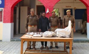 आजमगढ़ जनपद के सरायमीर थाना क्षेत्र में कानून व्यवस्था को सुदृढ़ बनाए रखने की दिशा में भुवनेश चौबे के नेतृत्व में पुलिस लगातार सक्रिय और सतर्क नजर आ रही है। थाना प्रभारी निरीक्षक के रूप में कार्यभार संभालने के बाद से उन्होंने अपराधियों के खिलाफ सख्त रुख अपनाते हुए क्षेत्र में प्रभावी कार्रवाई की है।हाल ही में सरायमीर पुलिस ने प्रतिबंधित पशुओं के अवैध वध और मांस बिक्री करने वाले गिरोह का भंडाफोड़ कर एक अभियुक्त को गिरफ्तार किया। पुलिस टीम द्वारा संदिग्ध व्यक्ति एवं वाहन चेकिंग के दौरान मिली सूचना पर त्वरित कार्रवाई करते हुए अभियुक्त को गिरफ्तार किया गया तथा उसके कब्जे से 21 किलो 400 ग्राम प्रतिबंधित मांस, वध में प्रयुक्त उपकरण, इलेक्ट्रॉनिक तराजू, नगदी व अन्य सामग्री बरामद की गई। इस कार्रवाई से क्षेत्र में अवैध गतिविधियों में लिप्त लोगों में हड़कंप मच गया है।