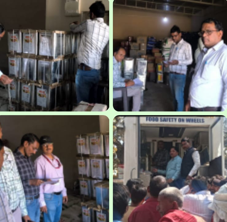 आजमगढ़ जनपद में होली पर्व के दृष्टिगत आयुक्त, खाद्य सुरक्षा एवं औषधि प्रशासन लखनऊ तथा जिलाधिकारी आज़मगढ़ के आदेश के क्रम में जनपद के आम जनमानस को मिलावटी खाद्य एवं पेय पदार्थो की विक्रय पर प्रभावी रोकथाम हेतु सहायक आयुक्त (खाद्य)-प्प् आज़मगढ़ द्वारा गठित खाद्य सुरक्षा अधिकारियों के प्रवर्तन दल द्वारा खोया, पनीर, दुग्ध उत्पाद से निर्मित खाद्य पदार्थ, खाद्य तेल, घी एवं वनस्पति, विभिन्न प्रकार की कचरी, पापड़, चिप्स एवं नमकीन, विभिन्न प्रकार की मिठाईयॉ, अन्य खाद्य पदार्थ यथा बेसन, मैदा आदि के विक्रय पर प्रभावी रोकथाम एवं खाद्य पदार्थो की शुद्धता तथा गुणवत्ता सुनिश्चित कराये जाने हेतु जुनैदगंज से 01 छेना मिठाई का नमूना तथा हुसैनगंज से 01 बूंदी का लड्डू मुसेपुर से 01 रिफाइण्ड सोयाबीन तेल व 01 बूंदी का लड्डू का नमूना तथा कालीनगंज से 01 भीम लड्डू, 01 सुगर ब्वाइल्ड कान्फेक्शनरी व 01 चोकोबिन्स का नमूना संग्रहित किया गया तथा कान्फेक्शनरी 80 किग्रा0 अनुमानित मूल्य रू0 10,800/- को जब्त कर सीज किया गया। एक अन्य खाद्य सचल दल द्वारा निजामाबाद क्षेत्र से 01 मैदा व 01 रिफाइण्ड सोयाबीन तेल का नमूना संग्रहित किया गया तथा रिफाइण्ड सोयाबीन तेल 733 किग्रा0 (कुल 49 टिन) अनुमानित मूल्य रू0 1,06,000/- जब्त कर सीज किया गया। अब तक अभियान में कुल 44 खाद्य पदार्थों के नमूनें संग्रहित कर प्रयोगशाला प्रेषित किये गये एवं एक खाद्य कारोबारकर्ता को सुधार हेतु नोटिस निर्गत की गयी। जनपद में अभियान के दौरान खाद्य सचल प्रयोगशाला द्वारा खाद्य सुरक्षा अधिकारियों ने हुसैनगंज व छतवारा तथा जुनैदगंज में खाद्य कारोबारकर्ताओं व आम जनमानस को जागरूक किया गया।