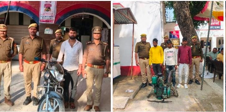 Azamgarh News:Two major police actions in Azamgarh: Pumping set recovered, criminal arrested with motorcycle