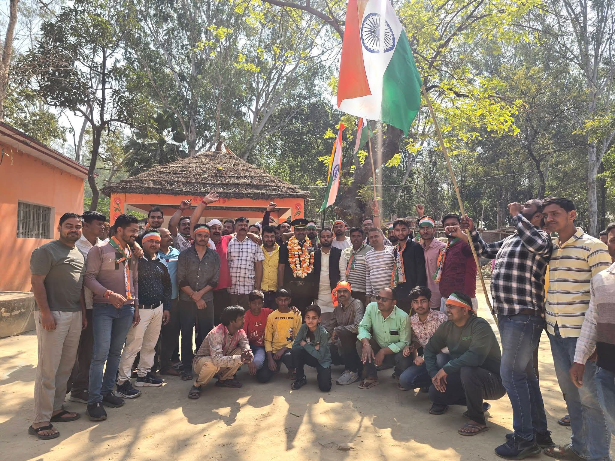 Azamgarh News:Grand welcome for retired Lieutenant, crowd gathered to mark his 30 years of military service.