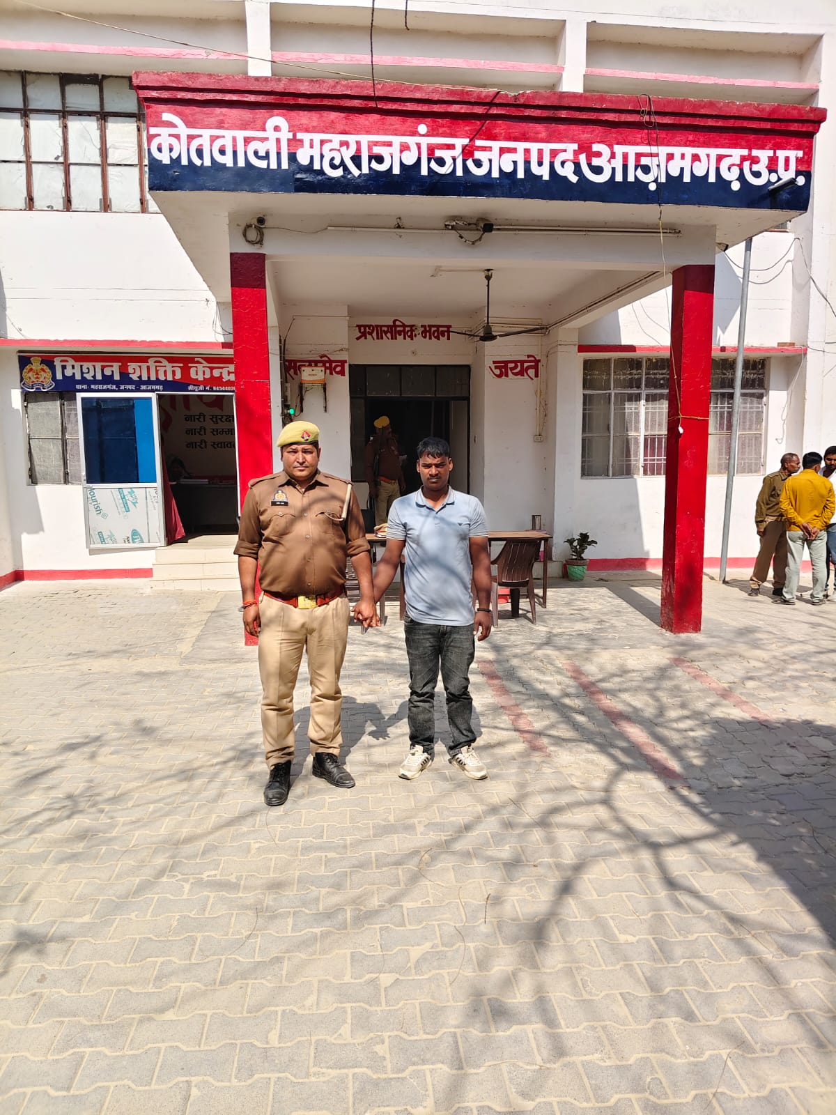 गोवध/गोमांस तस्करी की रोकथाम एवं वांछित अभियुक्तों की गिरफ्तारी हेतु चलाए जा रहे अभियान के क्रम में आज दिनांक 02.03.2026 को उ0नि0 विनय कुमार यादव मय हमराह पुलिस टीम द्वारा मुखबिर की सूचना पर कस्बा महराजगंज स्थित राजेसुल्तानपुर मोड़ से अभियुक्त शिबू पुत्र अंसार, निवासी – हुसैनाबाद, कस्बा निजामाबाद, थाना – निजामाबाद, जनपद आजमगढ़, उम्र – लगभग 19 वर्ष को समय करीब 06:10 बजे हिरासत पुलिस में लिया गया। अन्य अग्रिम विधिक कार्यवाही प्रचलित है।