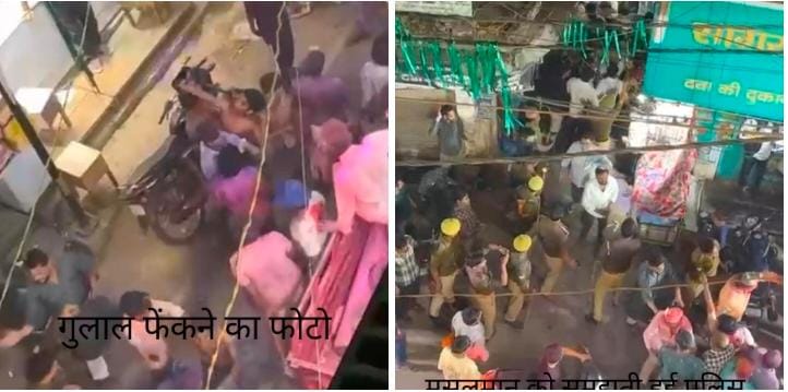 Azamgarh news:मुस्लिम बहुल मोहल्ले में होलिका दहन जुलूस के दौरान गुलाल फेंकने और गुलाल फेंकने पर विरोध का वीडियो वायरल,पुलिस ने संभाला मोर्चा
