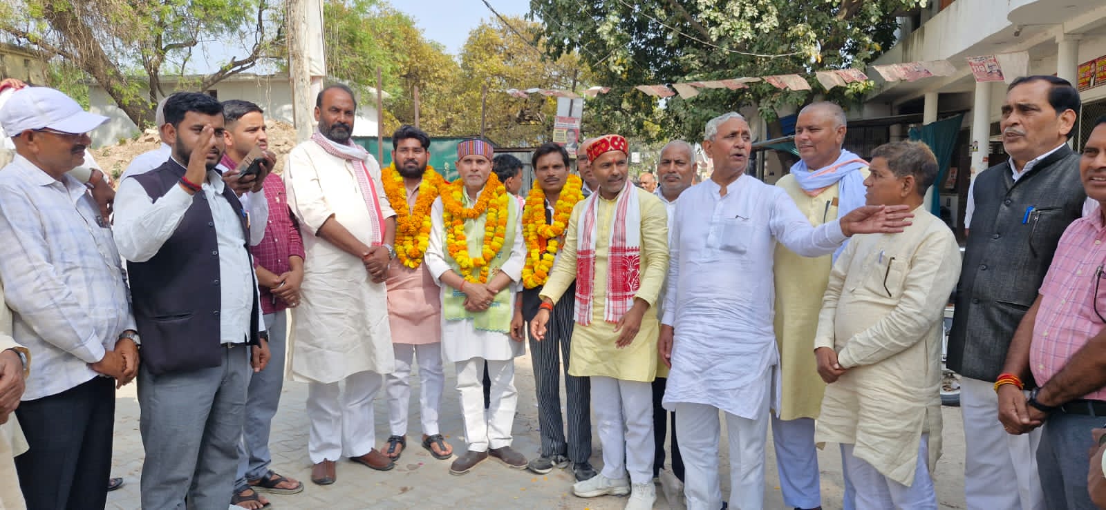 Azamgarh news: All three councillors were given a grand welcome with garlands of flowers.