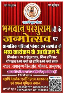 आजमगढ में भूमिहार समाज के आराध्य भगवान परशुराम जयंती पर भव्य आयोजन, सामाजिक एकता का होगा महा संगम