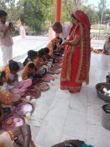 रघुनाथपुर दुर्गा मंदिर पर हुआ कन्या पूजन,हवन,आरती और भंडारे का आयोजन।