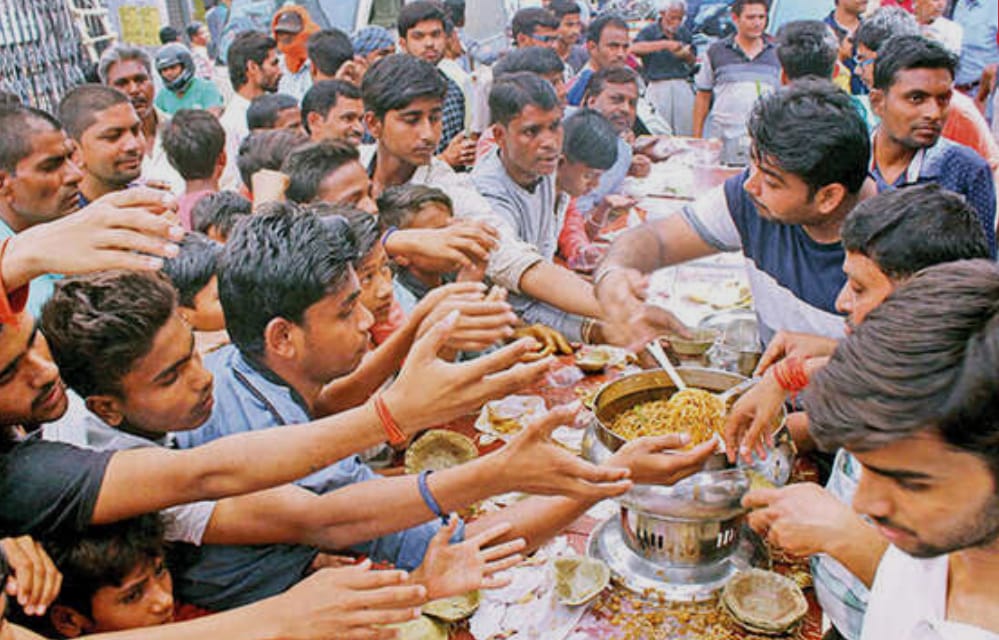 कथा समापन के उपरांत ग्रामवासियों एवं क्षेत्रवासियों के सहयोग से विशाल भंडारे का आयोजन किया गया। भंडारे में प्रसाद के रूप में पूड़ी, चना छोला, चावल एवं सूजी का हलवा श्रद्धालुओं को वितरित किया गया। शाम 6:00 बजे से रात 10:00 बजे तक हजारों की संख्या में उपस्थित श्रद्धालुओं ने प्रसाद ग्रहण कर पुण्य लाभ प्राप्त किया।