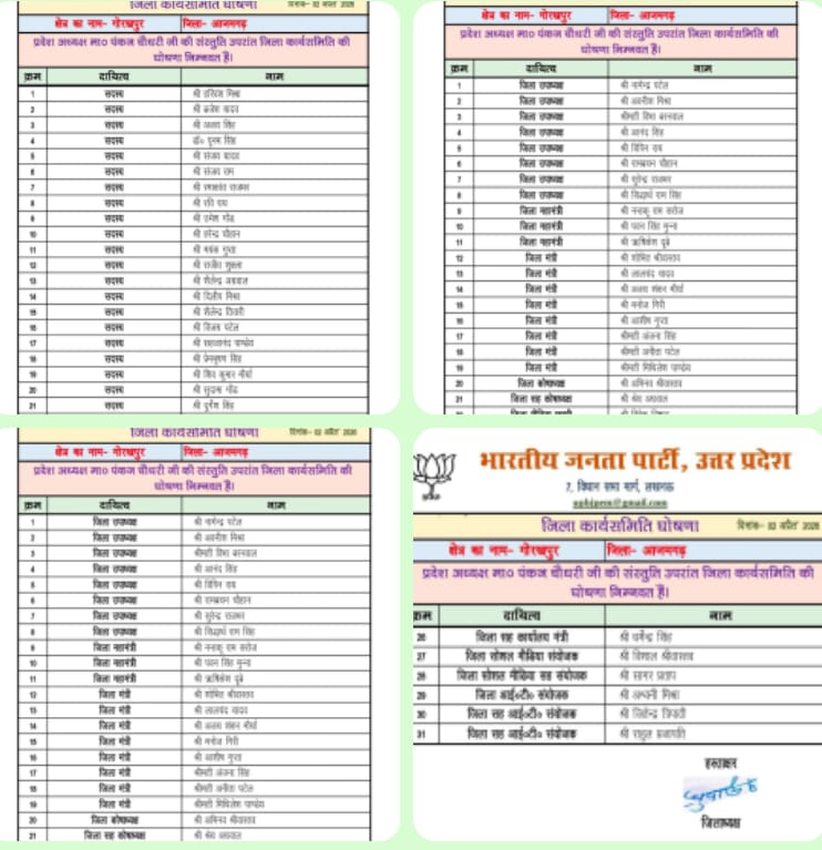 भाजपा आजमगढ़ की जिला कार्यसमिति घोषित, संगठन को धार देने की तैयारी