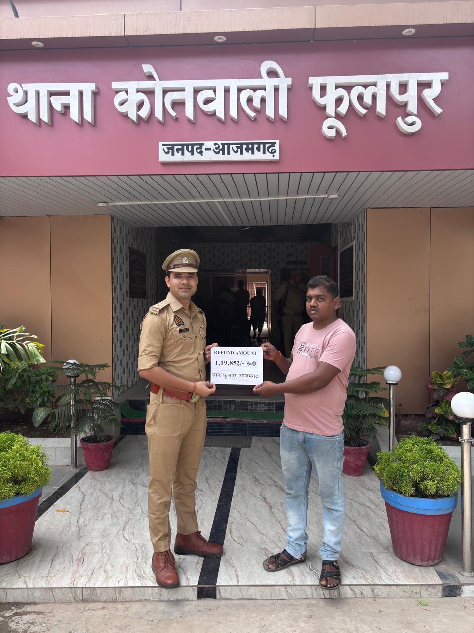Azamgarh news :साइबर फ्रॉड हुआ रुपया पुलिस ने पीड़ित के खाते में कराया वापस