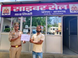Azamgarh news :फेक ई-चालान ऐप डाउनलोड करने से हुआ मोबाइल हैक, पुलिस ने साइबर फ्रॉड के रुपये पीड़ित के खाते में कराया वापस